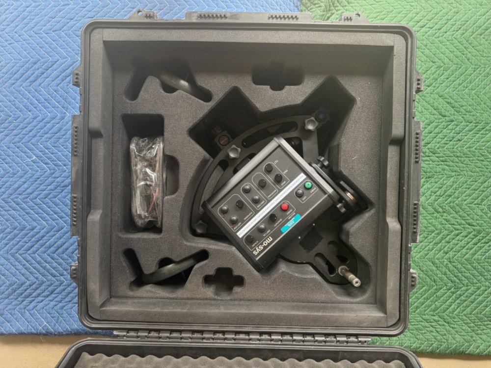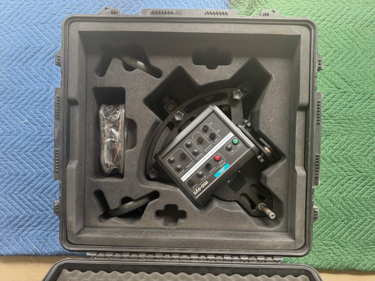 Purchased new in 2017. Mosys L 40 with analog console with back-pan compensation. Wireless operation with the wireless kit or direct via command cable. The system comes with the head, console, pan-wheels, wireless controls and Backstage Equipment rolling cart/stand. Extrras include a hi-hat for the console, a custom cutout high-hat for storing the head on the cart while not being used, padded dust covers, and some backup cables. Pelican cases with hard foam cutouts included. Everything is in excellent working condition. Local pick up in Atlanta, or buyer pays for shipping. *please contact me with any interest or questions.