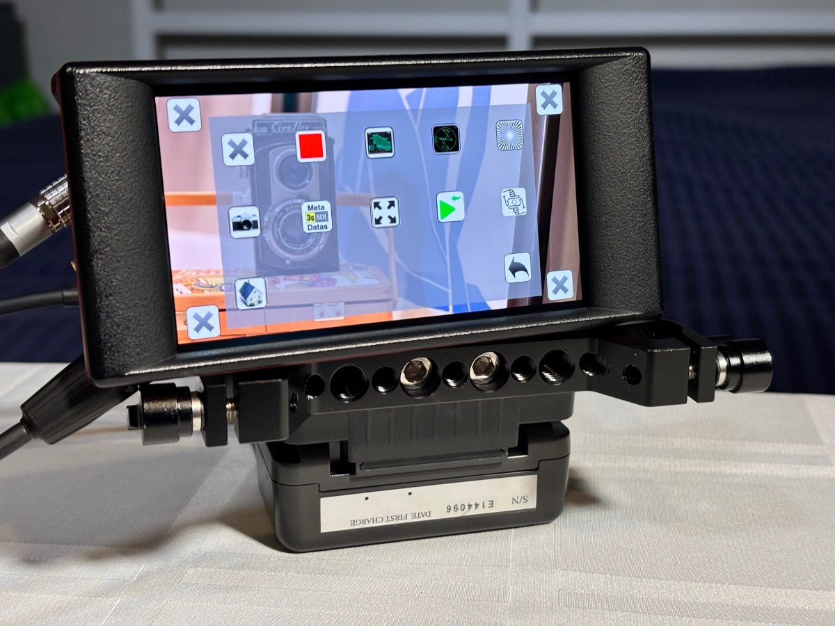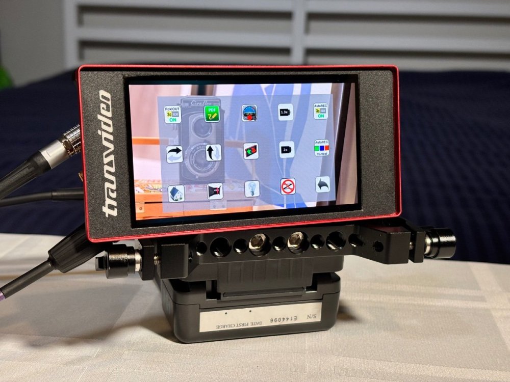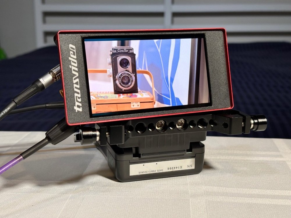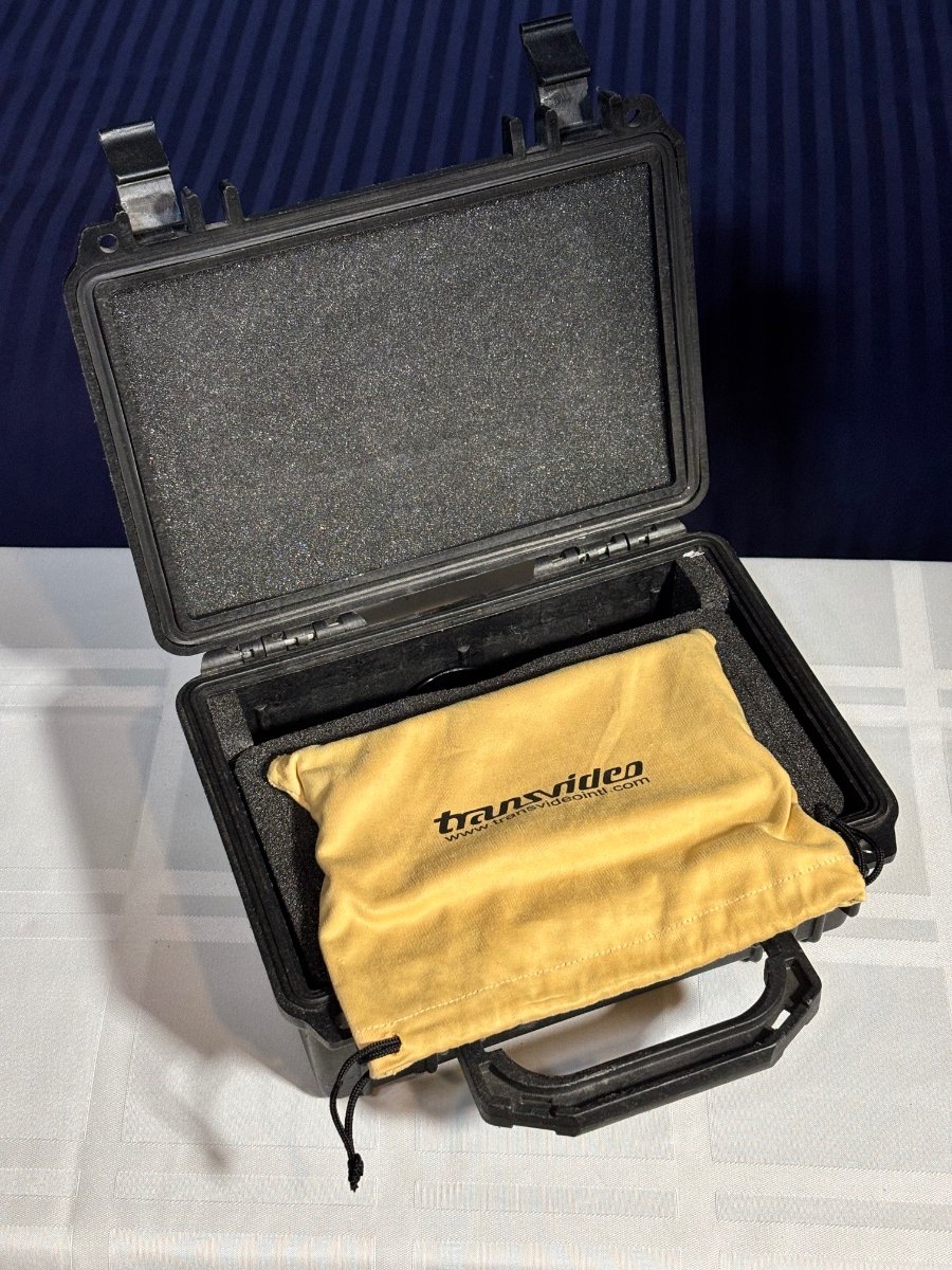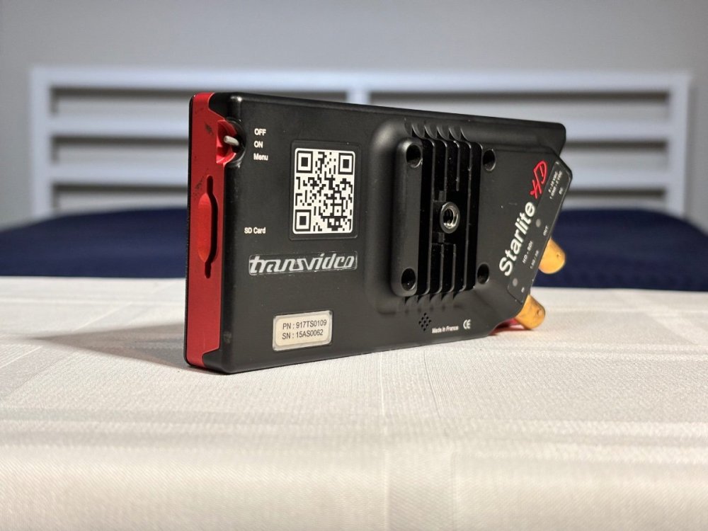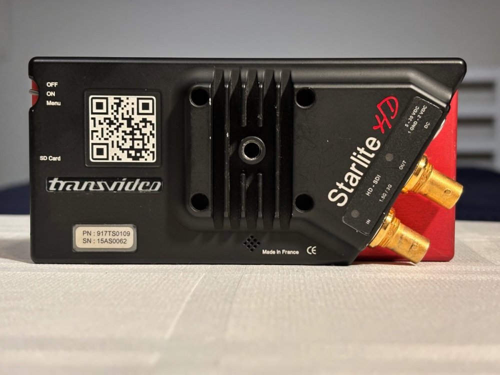 Transvideo Starlite HD 5” Monitor USD$450.00 2nd owner. Comes with case, microfiber bag, magnetic bezel, Canon BP900 battery adapter, 32GB SD card Fischer 3 pin to LEMO 2 pin cable. Some things to be aware of: The red anodizing has gone a bit orange. Don’t know if it’s age, sunlight or what but it doesn’t affect performance. The horizon has never worked for me The video recording function is extremely low resolution. That said, it’s a great low mode monitor and looks the business. From the Transvideo site: Small 5” HD OLED touch screen monitor weighting only 190 Grams (0.4 lbs) Wide color gamut (EBU) Slide in Zoom, Zoom 1:1 (pixel to pixel) – Peaking Metadata report V-FLIP and H-FLIP Wide power Input range Low power consumption Machined aluminium housing