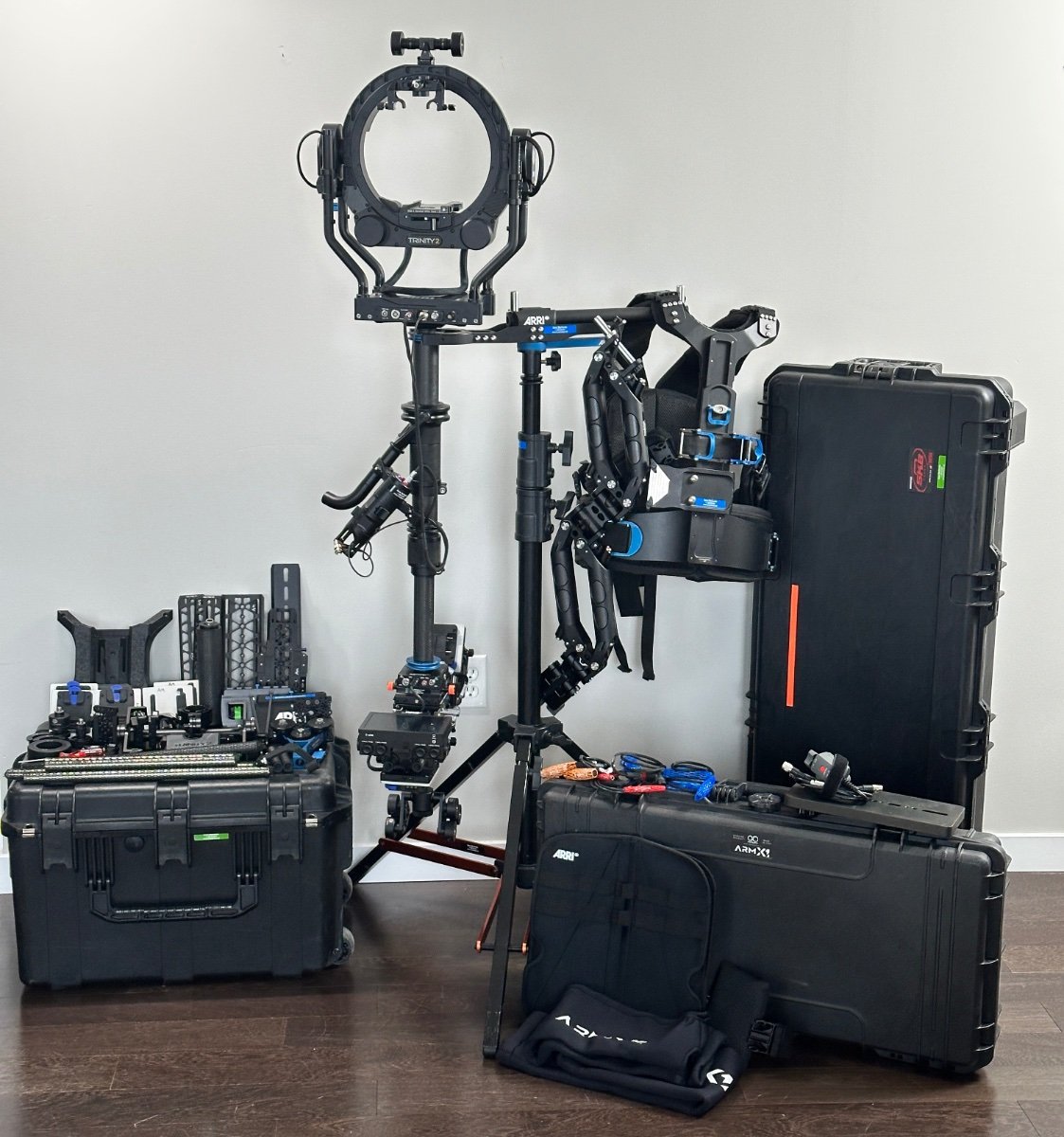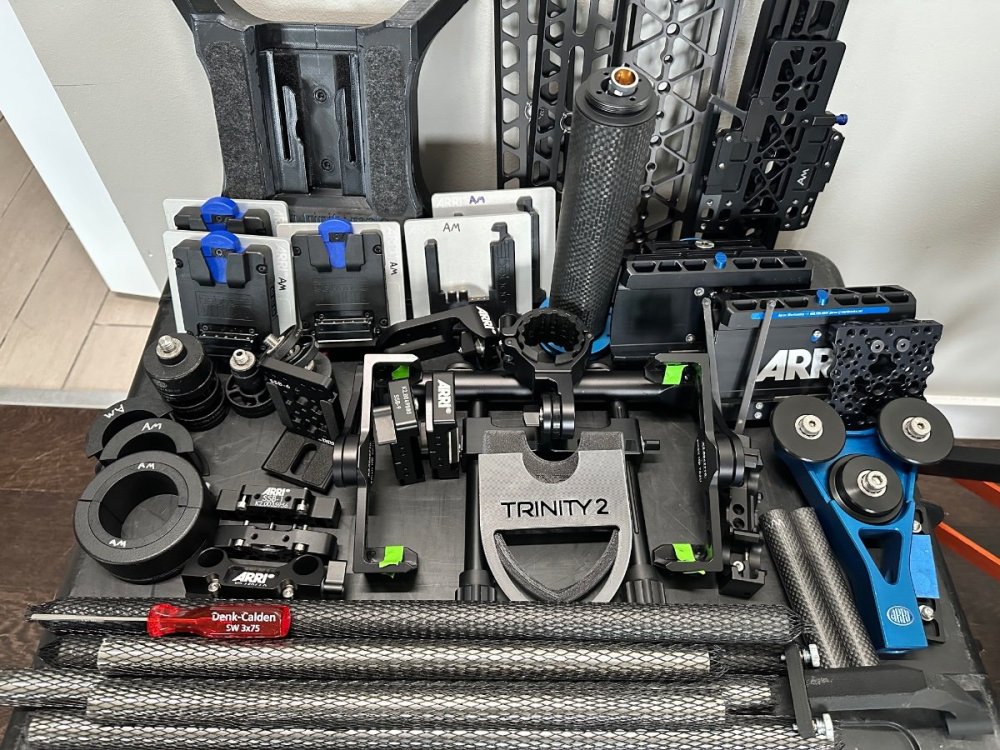 Due to a chronic injury, I am selling my Arri Trinity 2 package. Complete with Arri Artemis vest and SmartSystems Arm X1. This package has worked great, fully functioning and ready to attack the biggest jobs. Ready for either Trinity 2 or Artemis 2. Lots of extras and accessories round this out to be ready for pretty much any camera package you can throw at it. A few highlights of what is included: Trinity 2 Head 4 different flavors of SAM plates Ready for gold mount, v mount, and b mount Tons of counterweights DUB-1 for easily switching to sticks 2 controller master grip Lots and lots of brackets, rails, and accessories for the camera build and balancing 3d printed T2 head dock for balancing during prep Dedicated braided LBUS/monitor cable from SJS Cables The Arri Artemis Vest is like new and in fantastic condition. Pads are all recently sanitized and cleaned. The SmartSystems Arm X1 includes several different arm posts for flying different gimbal/sleds and both a rain suit and rain cover. There are very few cosmetic signs of wear which are noted in the photos. See the full inventory list of what is included and extensive photos here: INVENTORY LIST/PHOTOS I’d love to unload all three kits (Trinity/Artemis 2, Vest, Arm) together to a good home, but I am willing to split them up if there is interest. Price for all three in a packaged deal is $70,000 USD OBO. The only item pictured that is not included is the docking stand (docking bracket included). Please note that while this is a complete kit, neither a 5" nor a 7" monitor is included in this package. Willing to ship worldwide, buyer pays shipping.