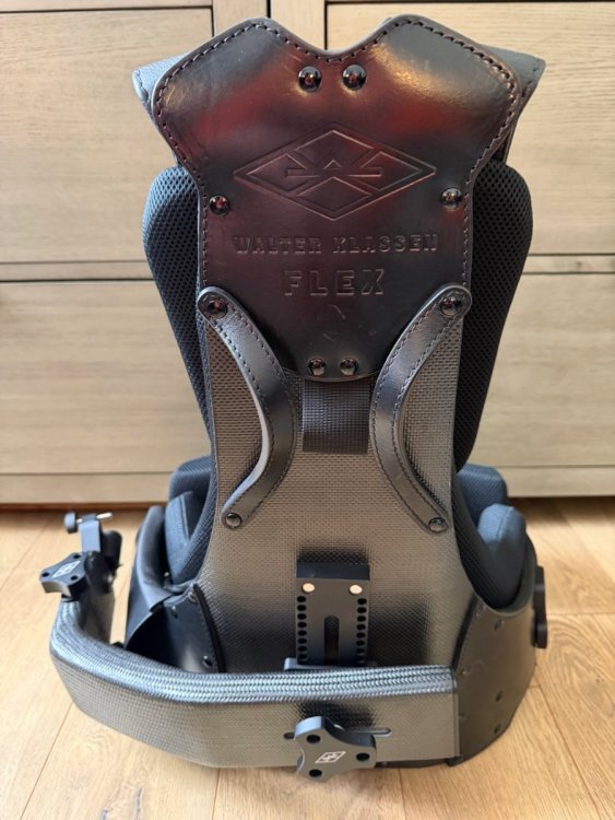 Walter Klassen Flex Vest For Sale Flex Vest w/ Black Air Knit Linings Straight Carbon Arm 2" Dropdown Carbon Arm Soft Bag / Tool Kit / Spare parts and Pads Bought new late 2022. Used very little...practically still in new condition. It was my second attempt to switch over but my well broken in Pro Vest is just too comfortable! I'm 6ft and 175lbs. All in new was $10,500 but looking to get $7,000 for all. I am willing to sell the 2" Dropdown Carbon Arm separately for $2,000. I'm located in Los Angles if you want to come by to check it out. If interested or have any questions please email, text, or call. Thanks! Scott (213) 880-2550 scott.camera@mac.com
