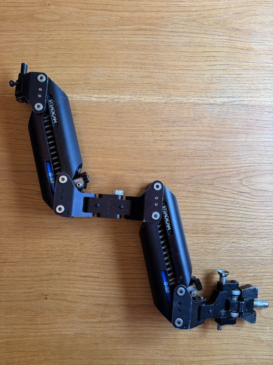 For sale: PRO GPI Steadicam Titan arm. Nice condition. Includes arm and six canisters. Four blue and two black everything in the photos is included. Best offer for quick sale. Great deal on a PRO CineLive sled listed and the PRO arm.